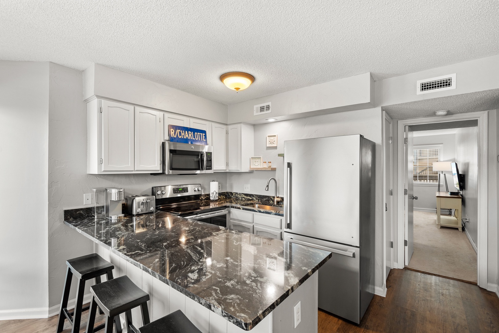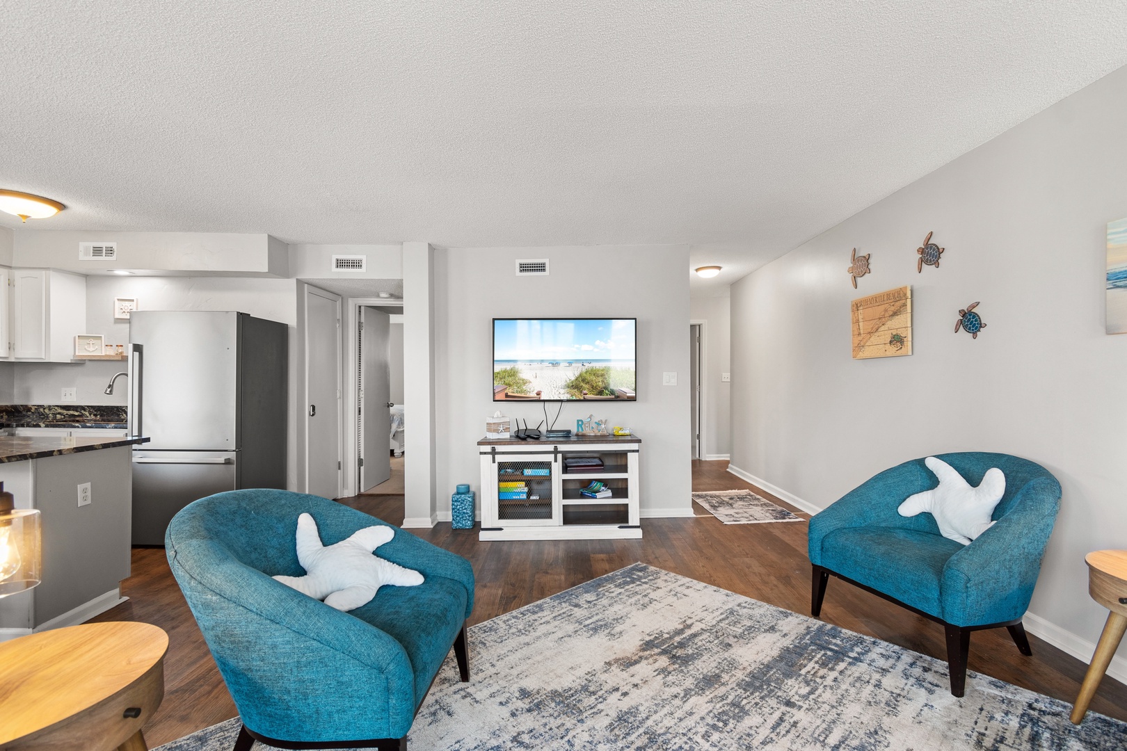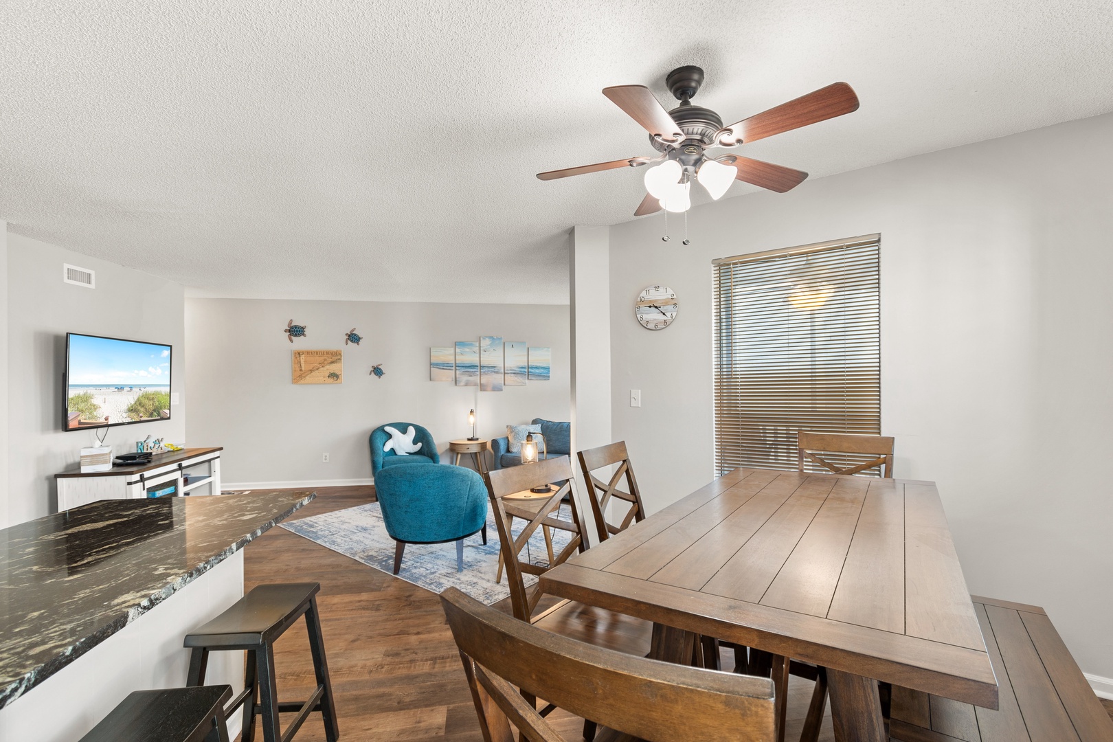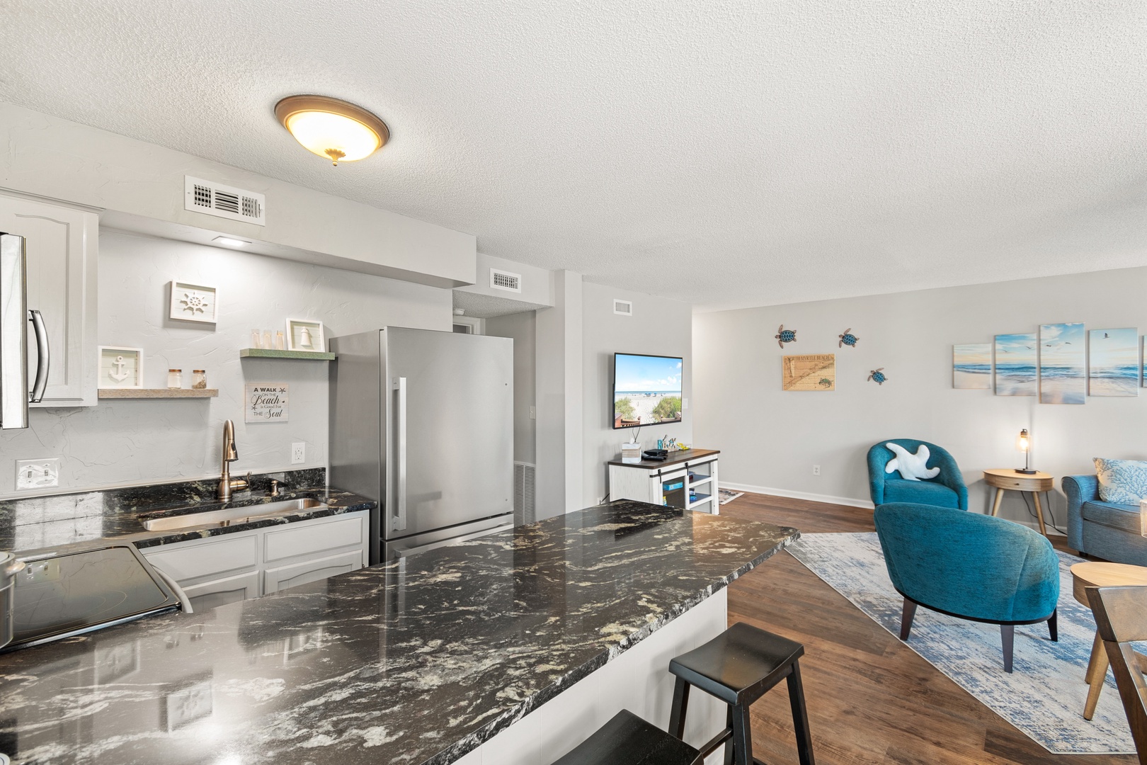 Modern Amenities: Recently updated with new flooring and countertops, the condo offers modern comforts, including a smart TV in the master bedroom for entertainment.