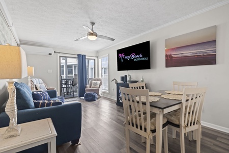 Step into a bright and airy living area designed for comfort. With plush seating, a flat-screen TV, and access to a private screened porch, this space is perfect for unwinding after a day of exploring. The queen-size pull-out couch provides additional sleeping space, making it ideal for larger groups. Enjoy breathtaking ocean views right from your living room!​