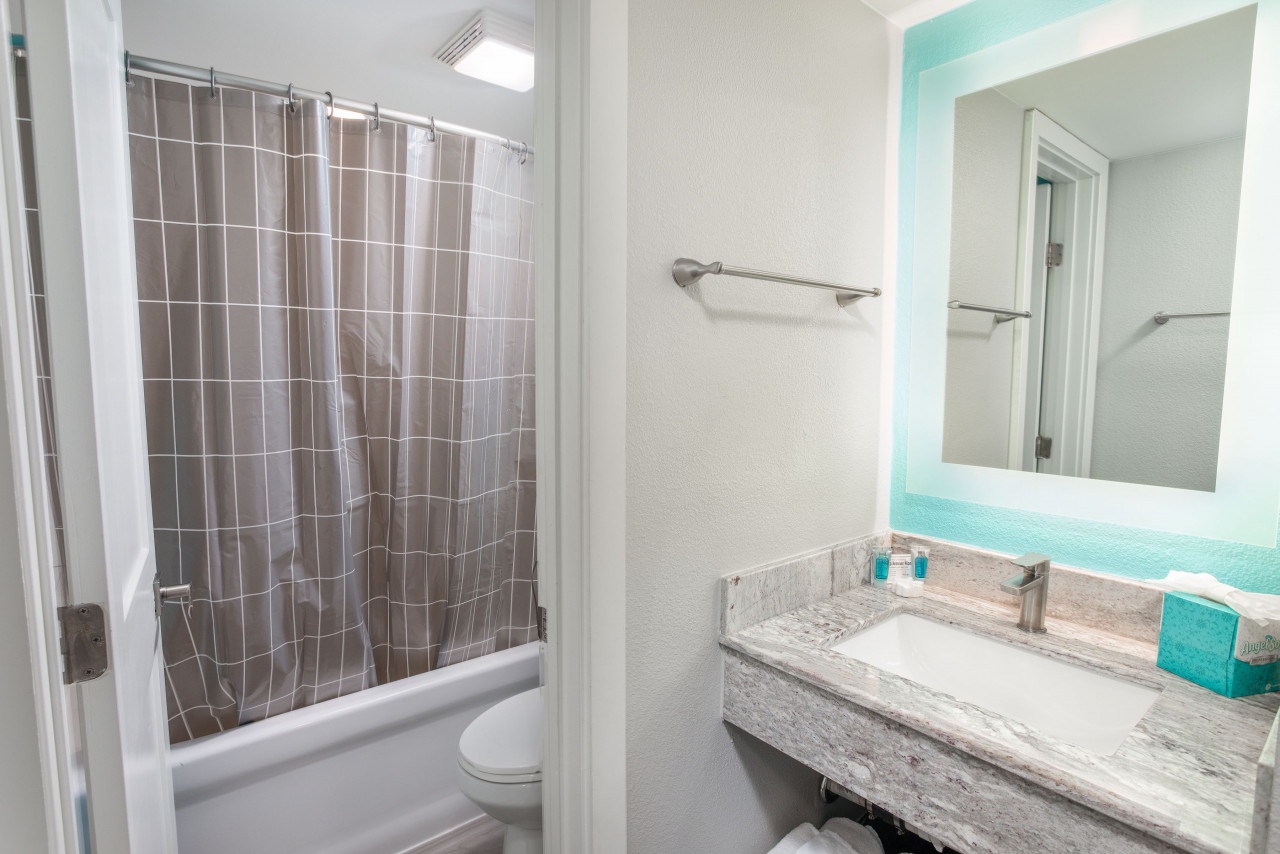 Relax in a bright and functional living area designed for comfort after a long day of sunshine, swimming, and exploring Myrtle Beach. Step out onto your patio for fresh air and a view of the waterpark area—you’ll be close to all the action!