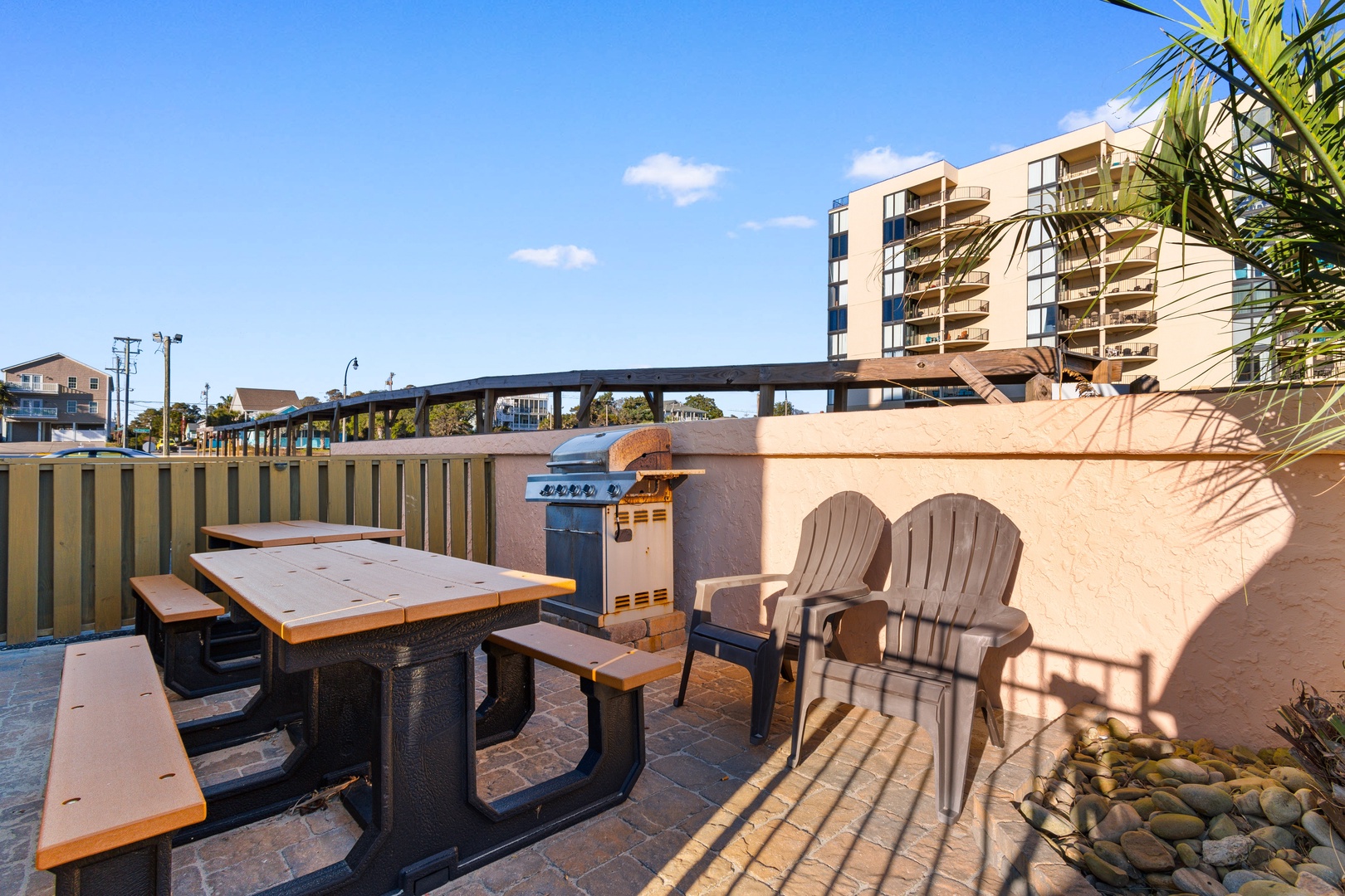 The Carolina features a (seasonal) outdoor pool and grills on the oceanfront. There is an elevator to get to your room comfortably. This condo offers stunning ocean views from its 6th-floor balcony, with easy beach access just steps away. Located near attractions, shops, and restaurants, it’s perfect for families seeking either a relaxing retreat or an exciting getaway. An on-site washer and dryer are located in the building as well.