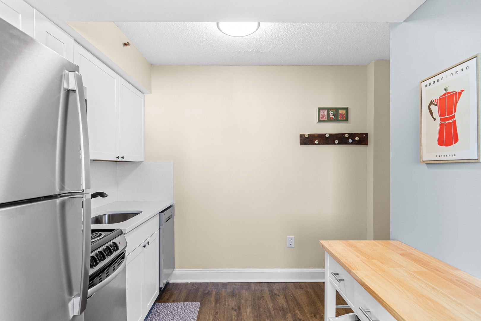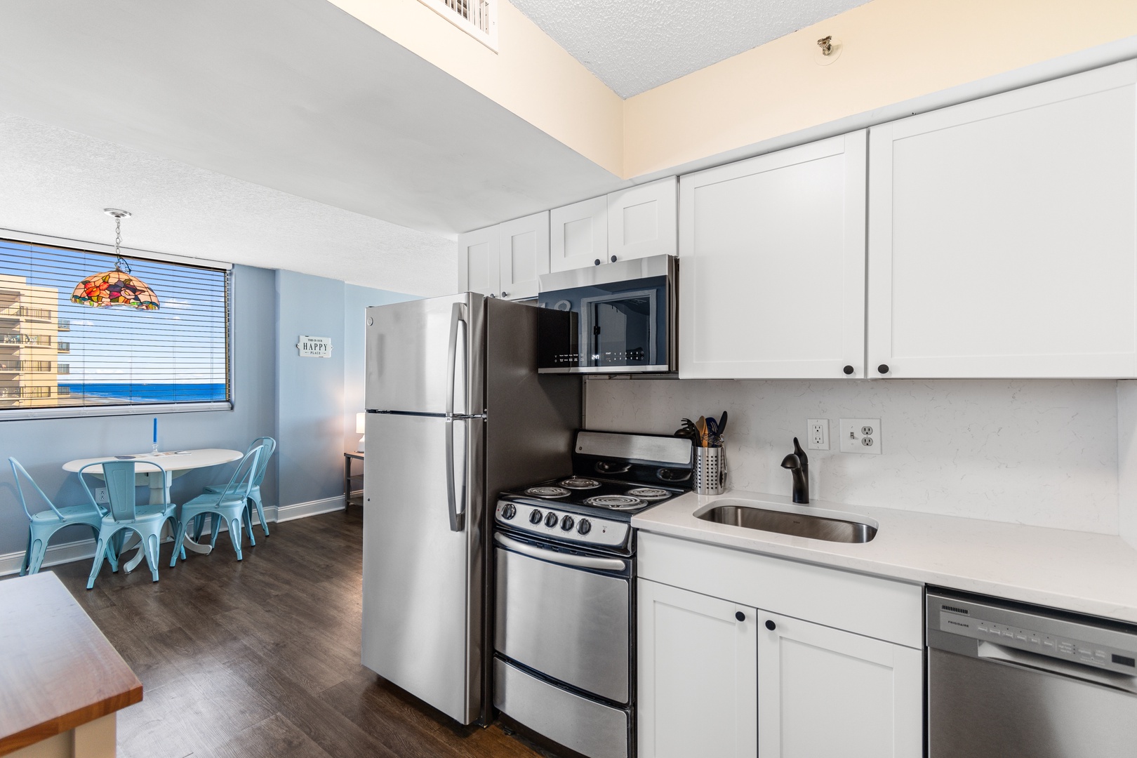 The fully equipped kitchen is stocked with essentials, making it easy to prepare home-cooked meals. A keurig coffee maker is available for that early-morning boost you made need to get Vacation going.