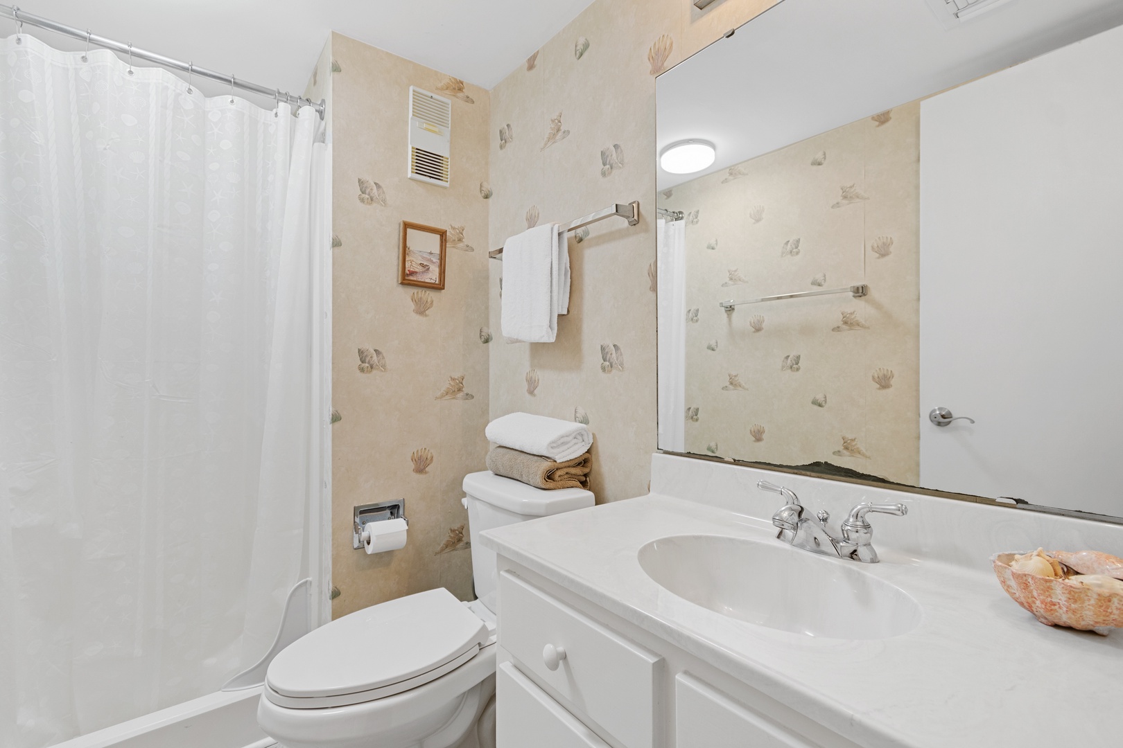 Spacious Accommodations: Comfortably sleeps up to 8 guests with a King bed in the Master bedroom, a Queen bed in Guest room 1, 2 Twin beds in Guest room 2, and a Full sofa bed in the living room.