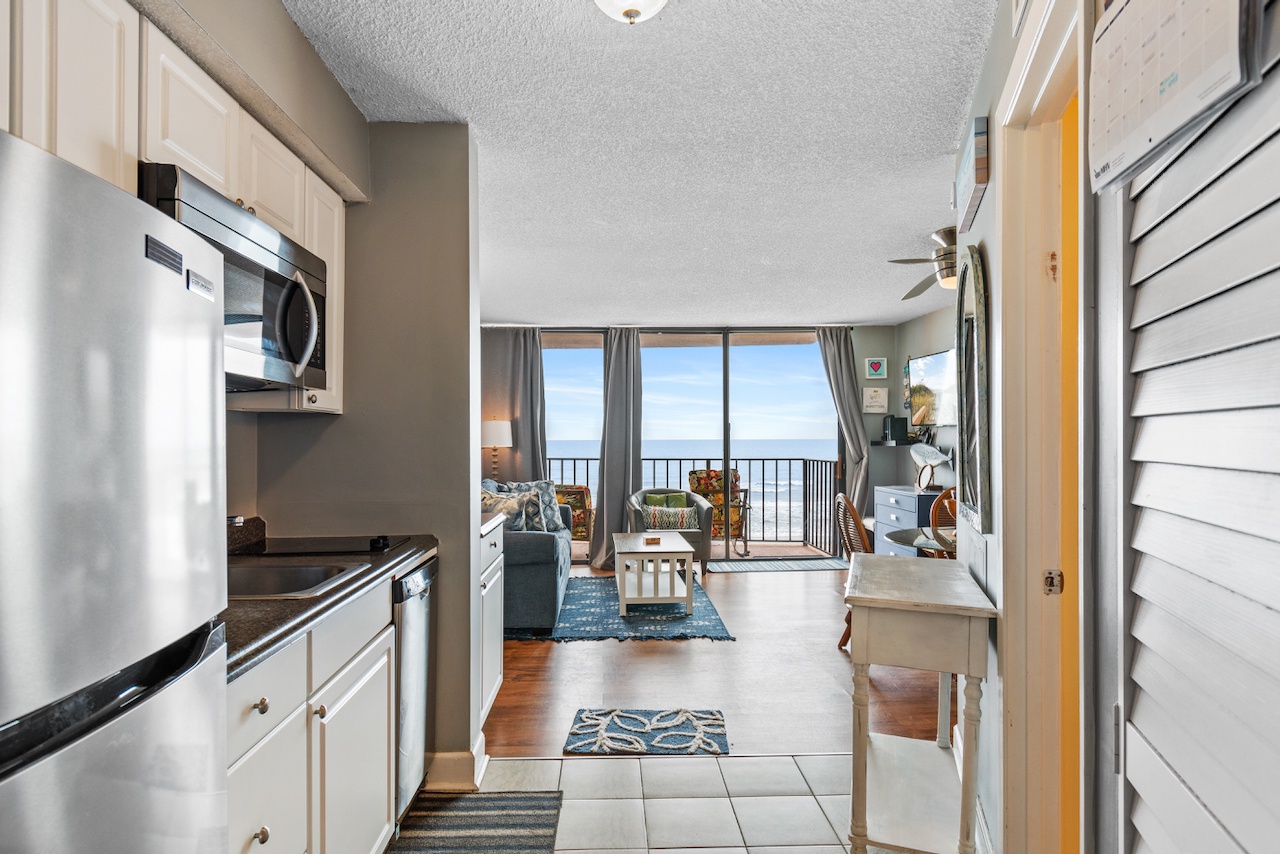 Located along the Crescent Beach section of North Myrtle Beach, this Stay includes an outdoor pool and sunset views from your private balcony. Inside you'll find the perfect-sized Living Room for a Couple or Family of four. The Kitchenette is great for a quick meal.