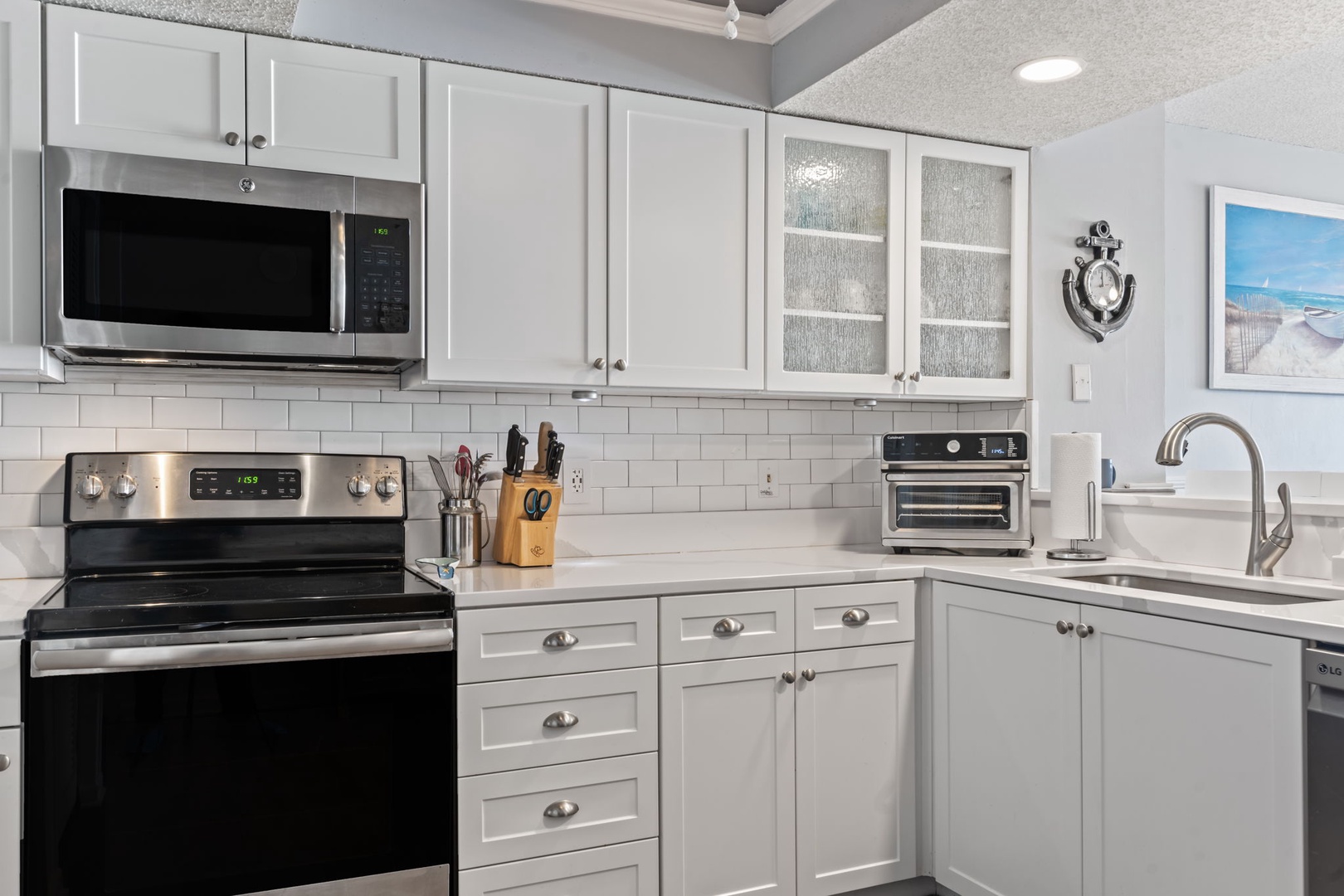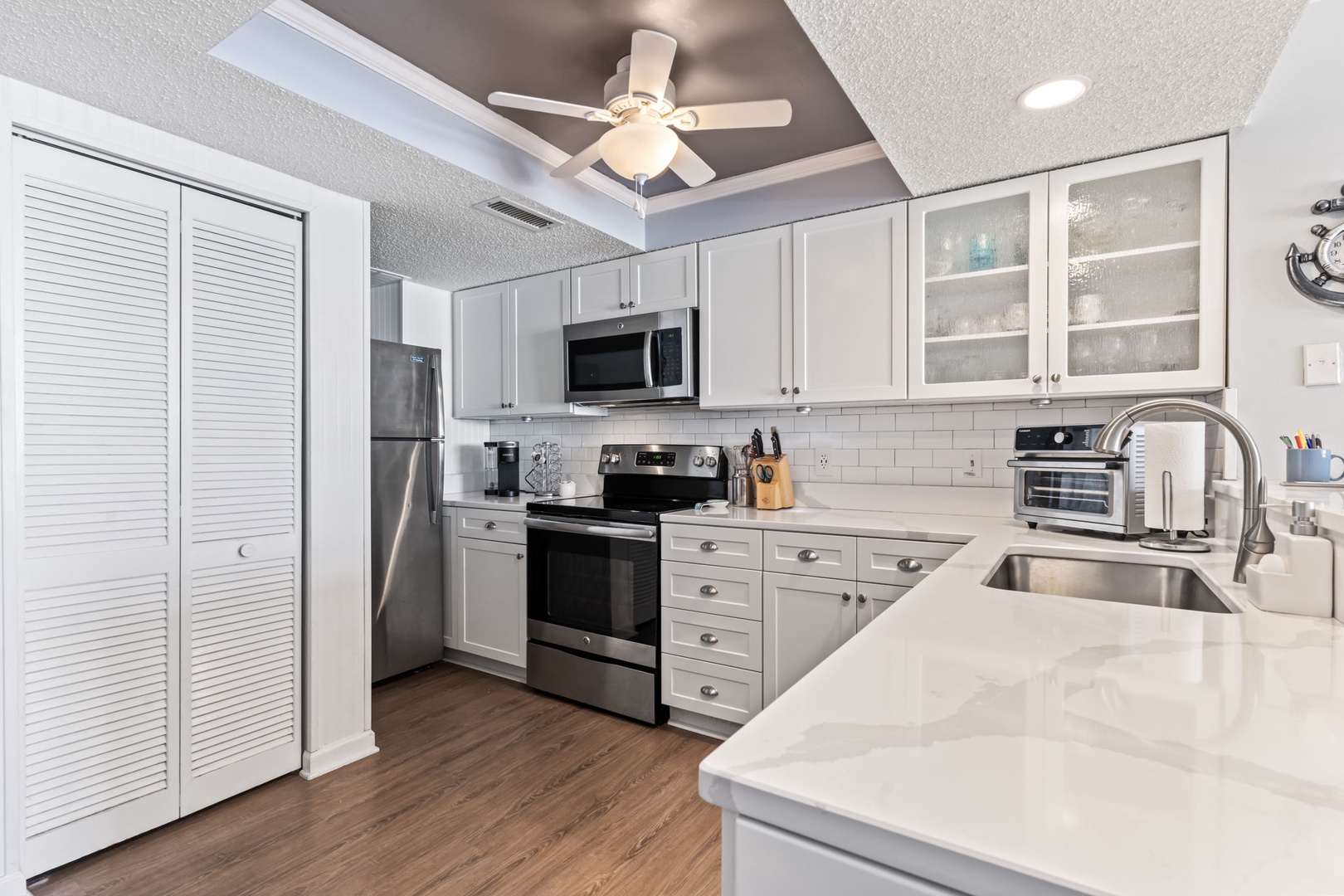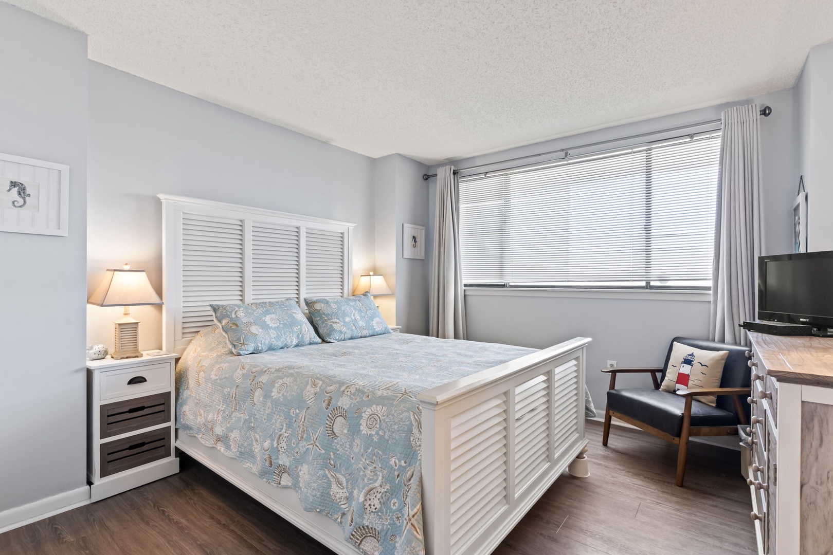 In the Condo, you'll find a full kitchen and spacious Living Room with a large TV for streaming the best movies. The primary bedroom has its own Ocean view, and the third bedroom has bunk beds for all the kids.