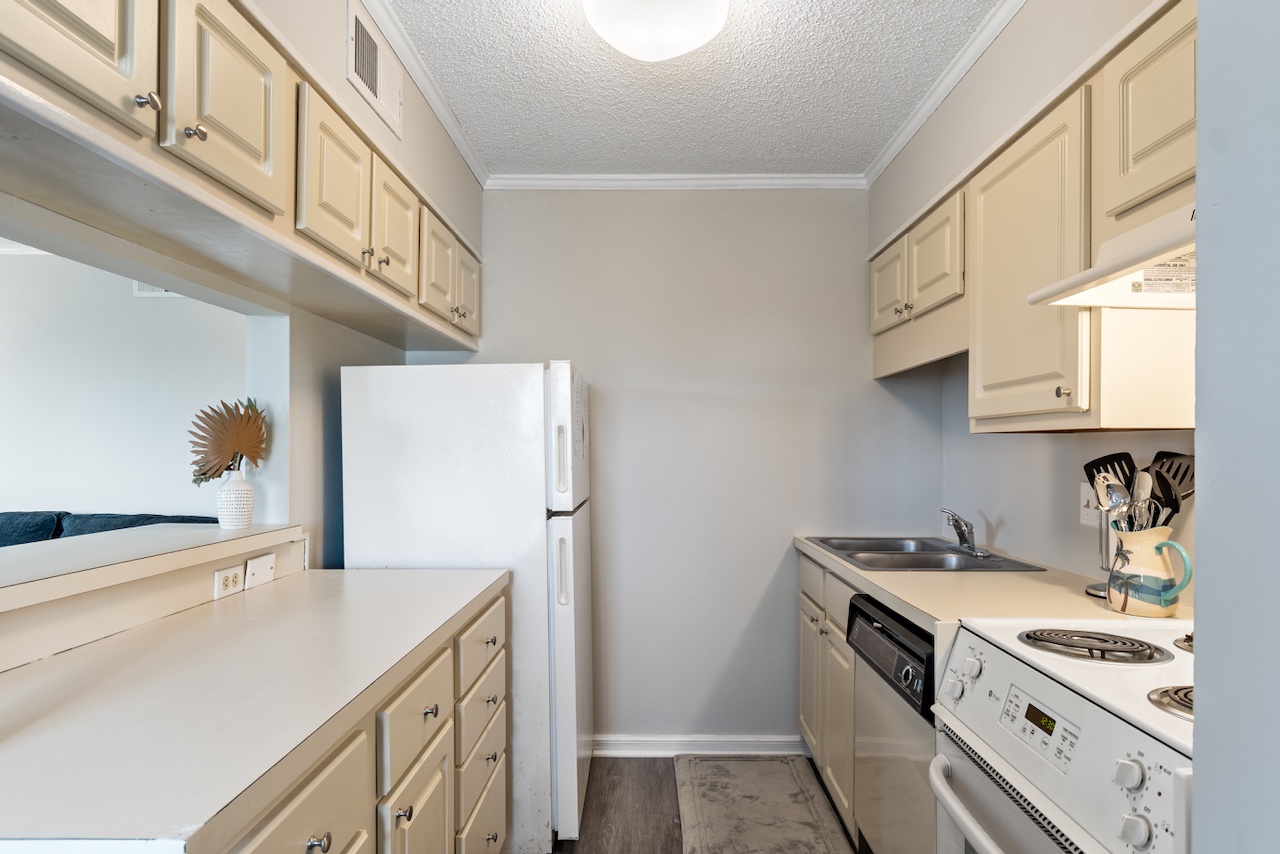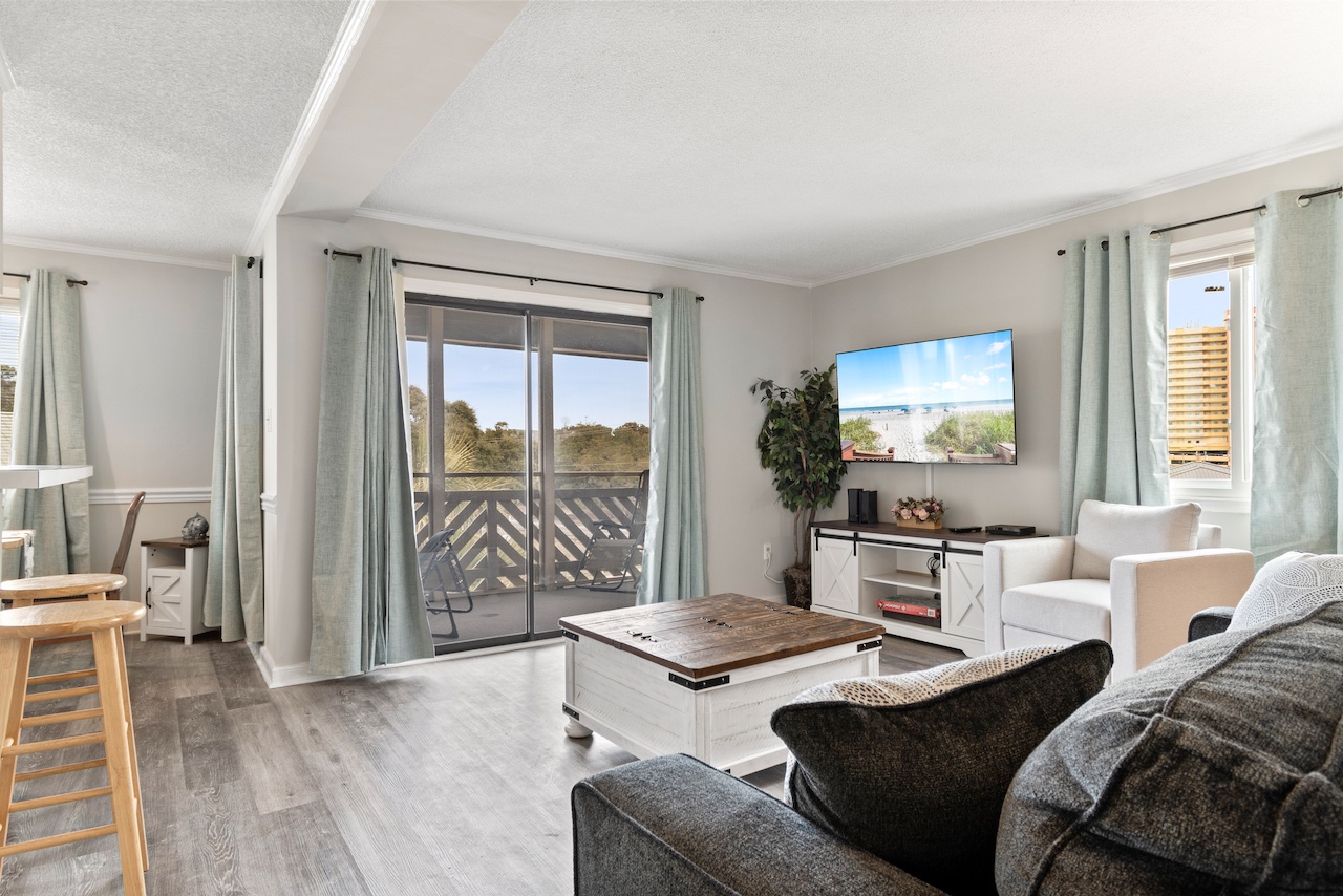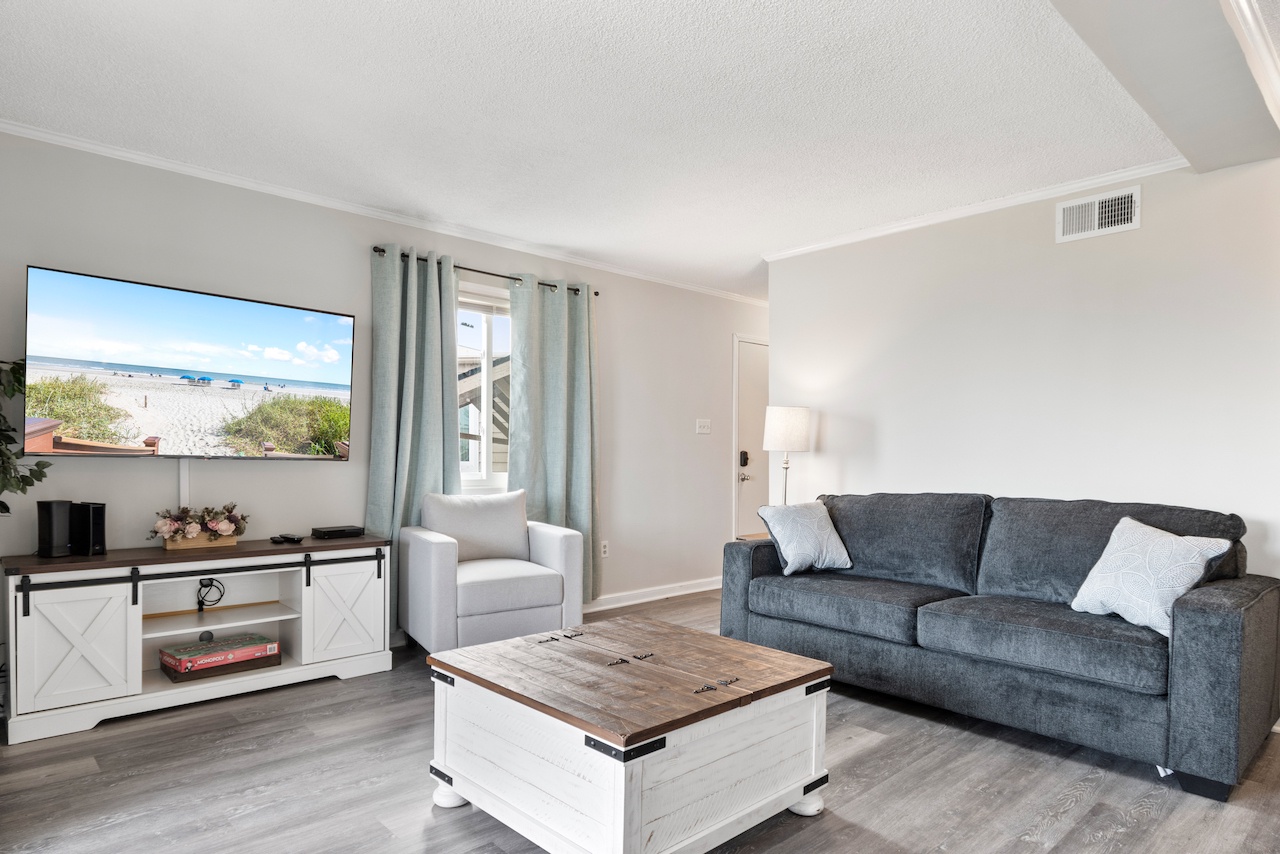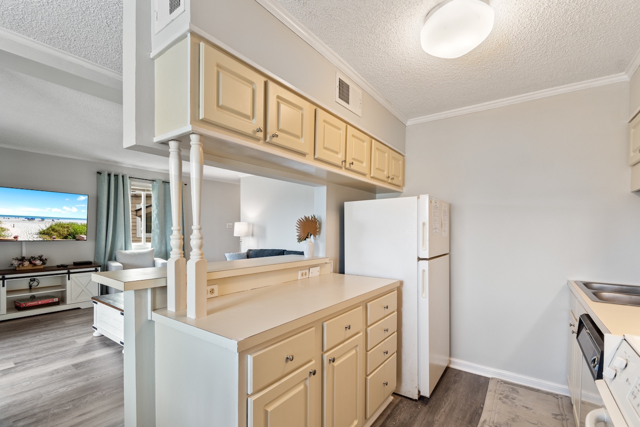 This coastal condo includes four beds between the 2 bedrooms. Smart TVs are located in the living room and primary bedroom. The Kitchen is prepared for any meals you'd like to chef-up.