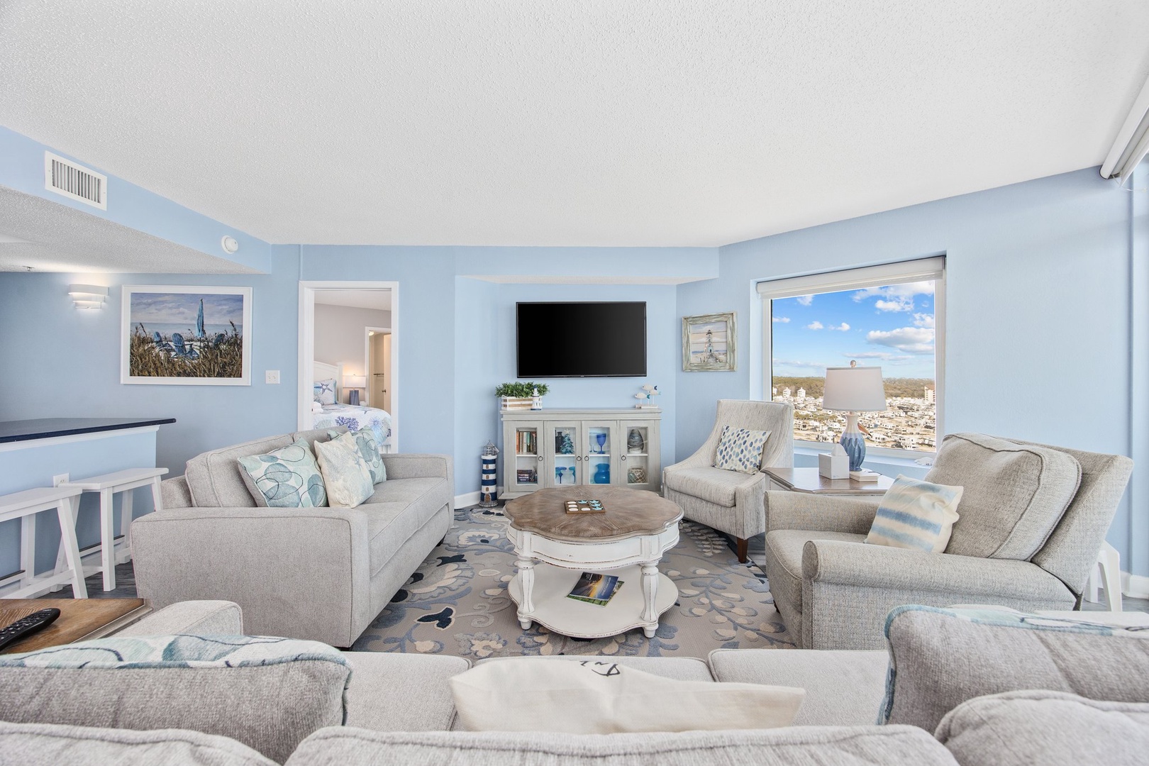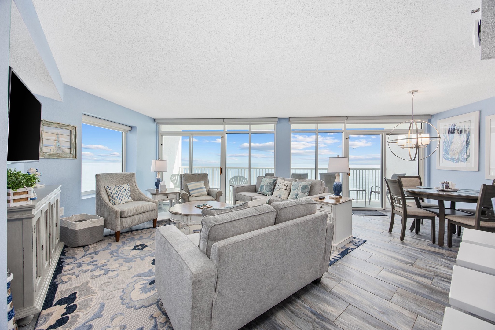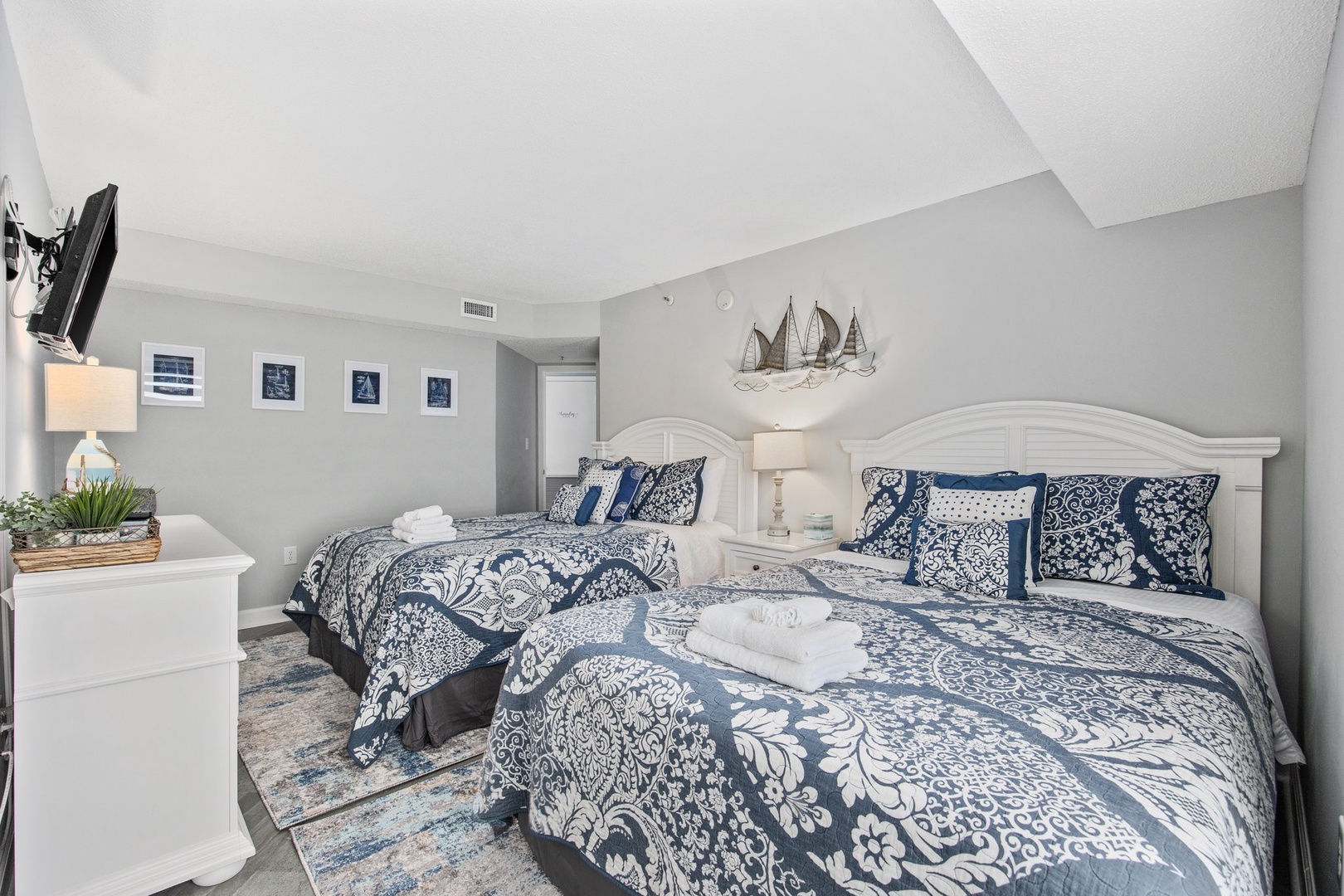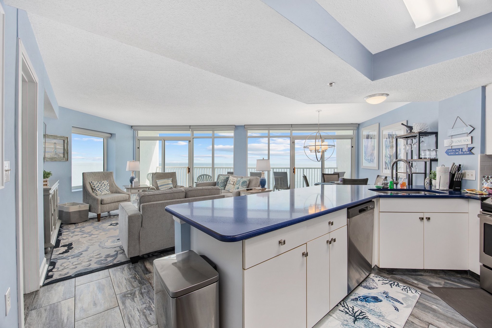 If relaxation is what you are looking for, dive into your choice of beach-side outdoor and indoor hot tubs or grab a tube and drift away into tranquility in one of two 225’ lazy rivers. Once inside the condo, there is plenty of room for families, couples and golfing buddies. You’ll find a spacious living room and balcony, perfect for viewing the endless Myrtle Beach coastline. Each bedroom in this roomy condo includes Smart TVs and their own bathrooms. The fully stocked kitchen invites culinary adventures with plenty of dining space. Don’t wait, book today!