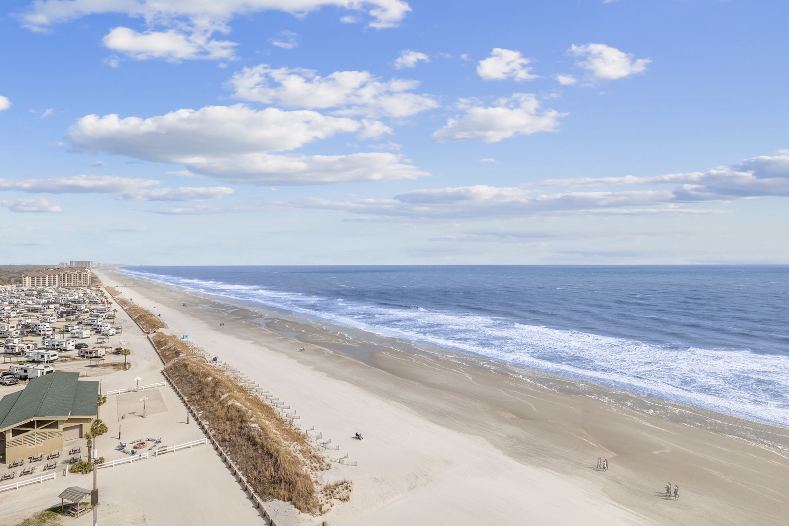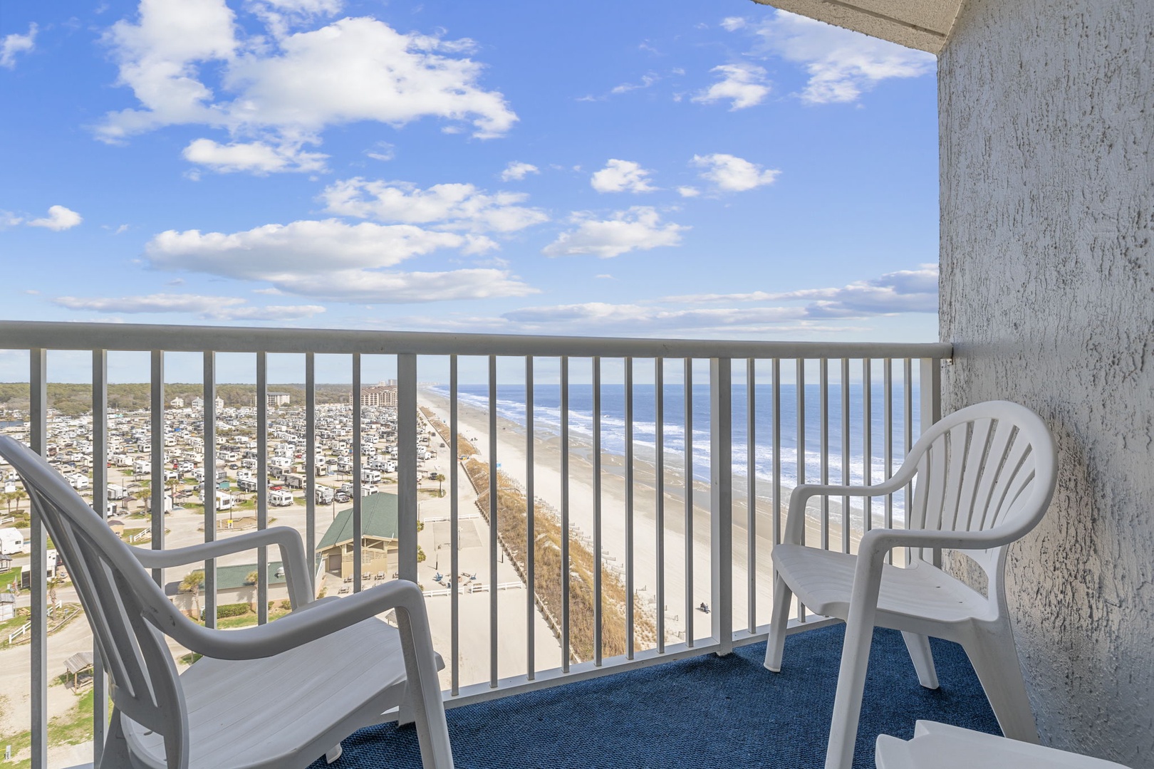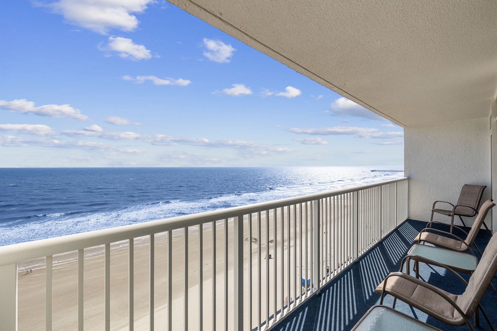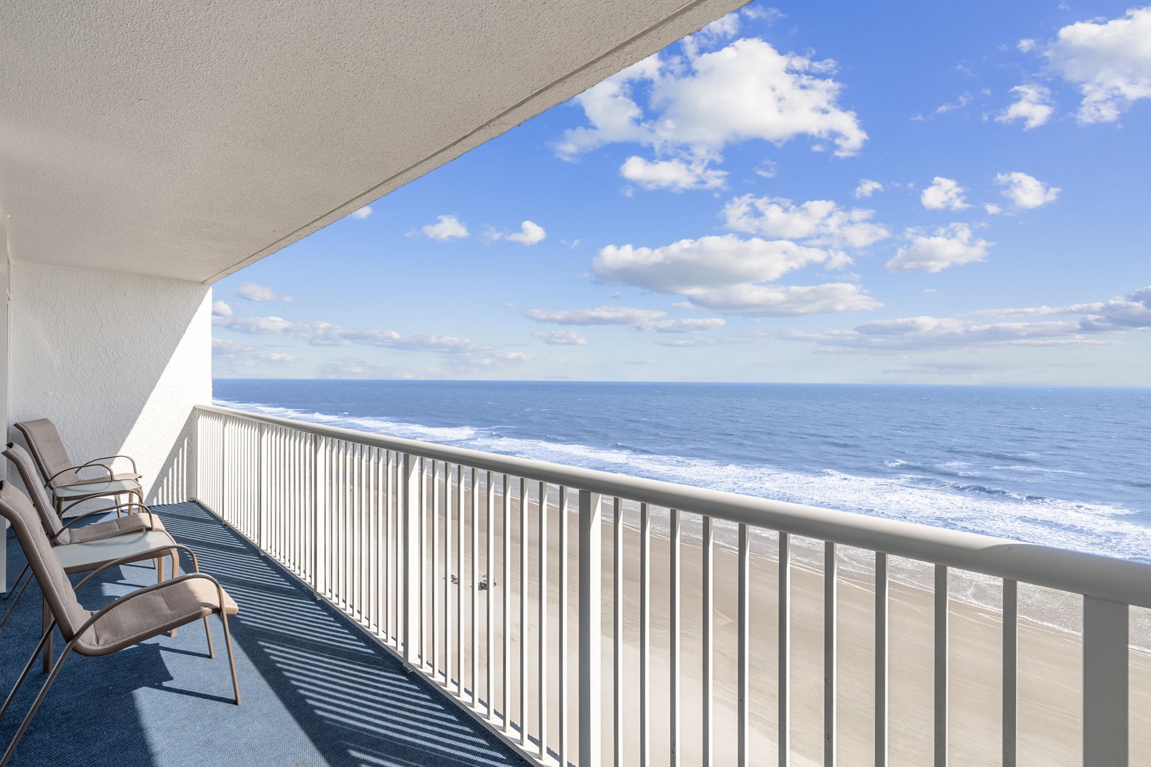 Wide oceanfront balcony with 180 °, unobstructed views of the Grand Strand Shore and spectacular sunrises
