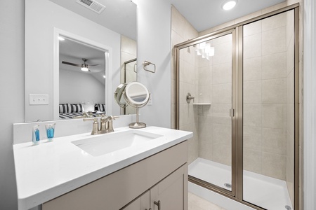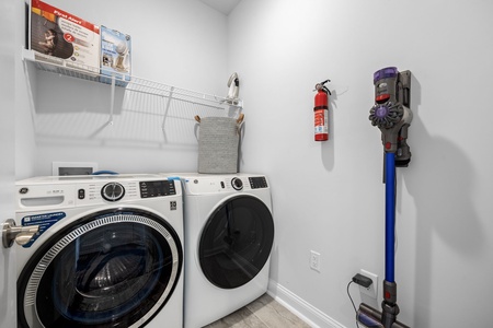 After taking the first flight of stairs you'll immediately find the Primary Bedroom. The relaxing layout will leave you speechless with the walk-in closet and modern bathroom. You'll find great detail in the furnishings such as makeup mirrors in each bathroom, Smart TVs in every room, and USB plug ins around each nightstand. Bedroom two and three mirror each other on the second floor with a full bed in each. A shared Bathroom can be found next to the Washer and Dryer room. Up the next flight of stairs you'll find the final bedroom with two full beds and one sofa bed. A retro-game machine completes the space and makes this the ultimate hang out spot! A bathroom sits on the top floor and the half-bathroom is on the first floor near the garage/front door.