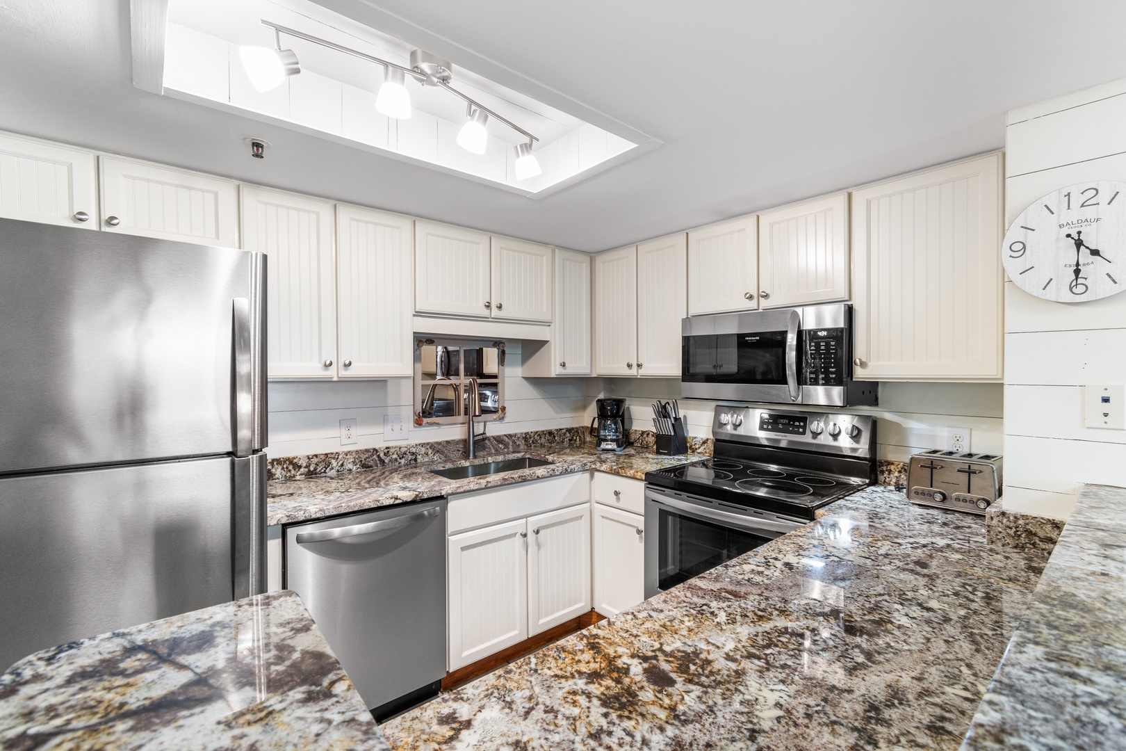 * Stylishly Updated Interior: Newly installed granite countertops, stainless steel appliances, and modern furniture create a sleek, inviting atmosphere.