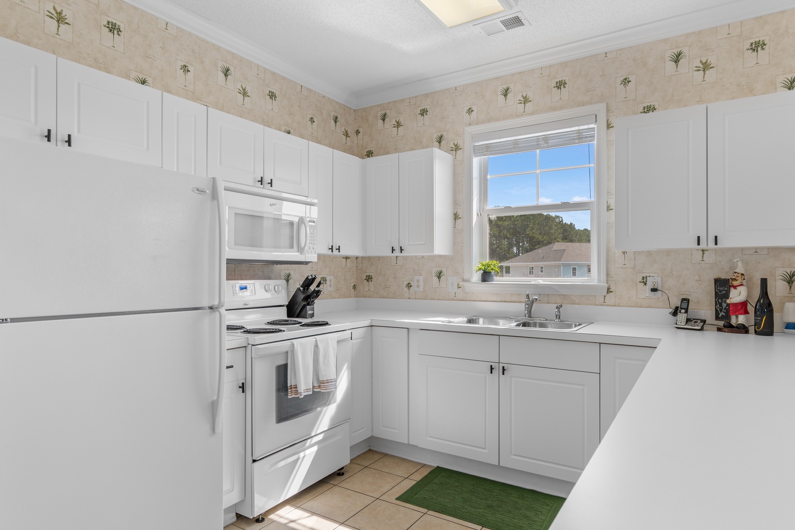 This pet-friendly, beautiful condo offers a peaceful retreat in the heart of Barefoot Resort, overlooking the scenic fairways and just minutes from North Myrtle Beach’s top attractions. With 2 spacious bedrooms and 2 bathrooms, it’s the perfect getaway for families and groups. Step onto the private balcony and take in the serene golf course views while enjoying the fresh air. Inside, you'll find a fully equipped kitchen with modern appliances, cookware, and dining essentials—ideal for preparing home-cooked meals. The cozy living area features comfortable seating and a flat-screen TV, creating an inviting space to relax after a day of exploring. Guests will have access to resort-style amenities, including multiple pools, walking trails, and championship golf courses. For added convenience, the condo includes an in-unit washer and dryer, making extended stays even easier. Located near Barefoot Landing, top restaurants, golf courses, and great shopping, this prime location ensures a memorable stay.