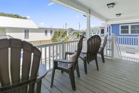 *Covered Deck Overlooking the Pool – Watch the kids swim while you unwind