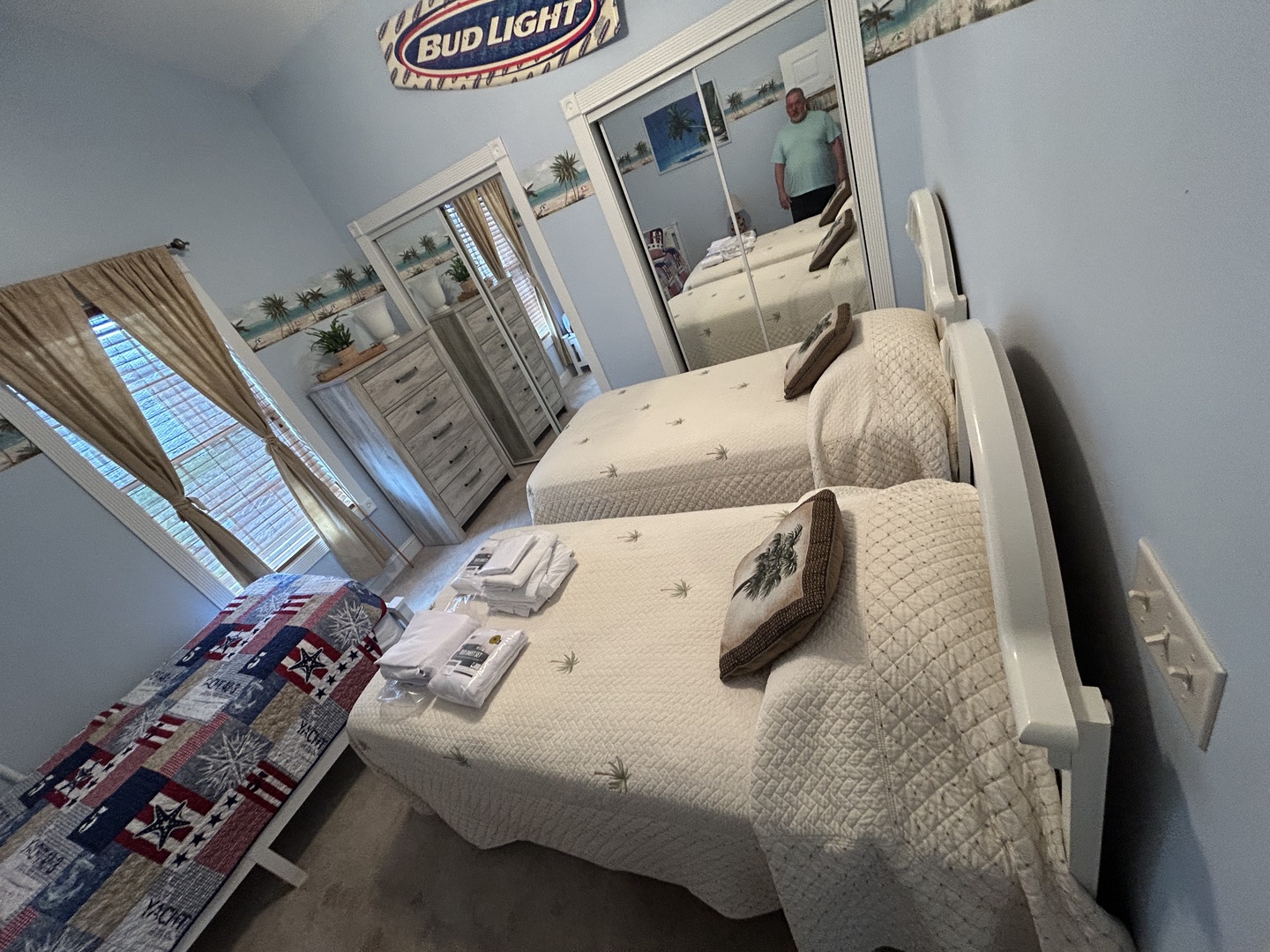 * Second Bedroom – Two twin beds with cozy bedding and easy access to the second bathroom.